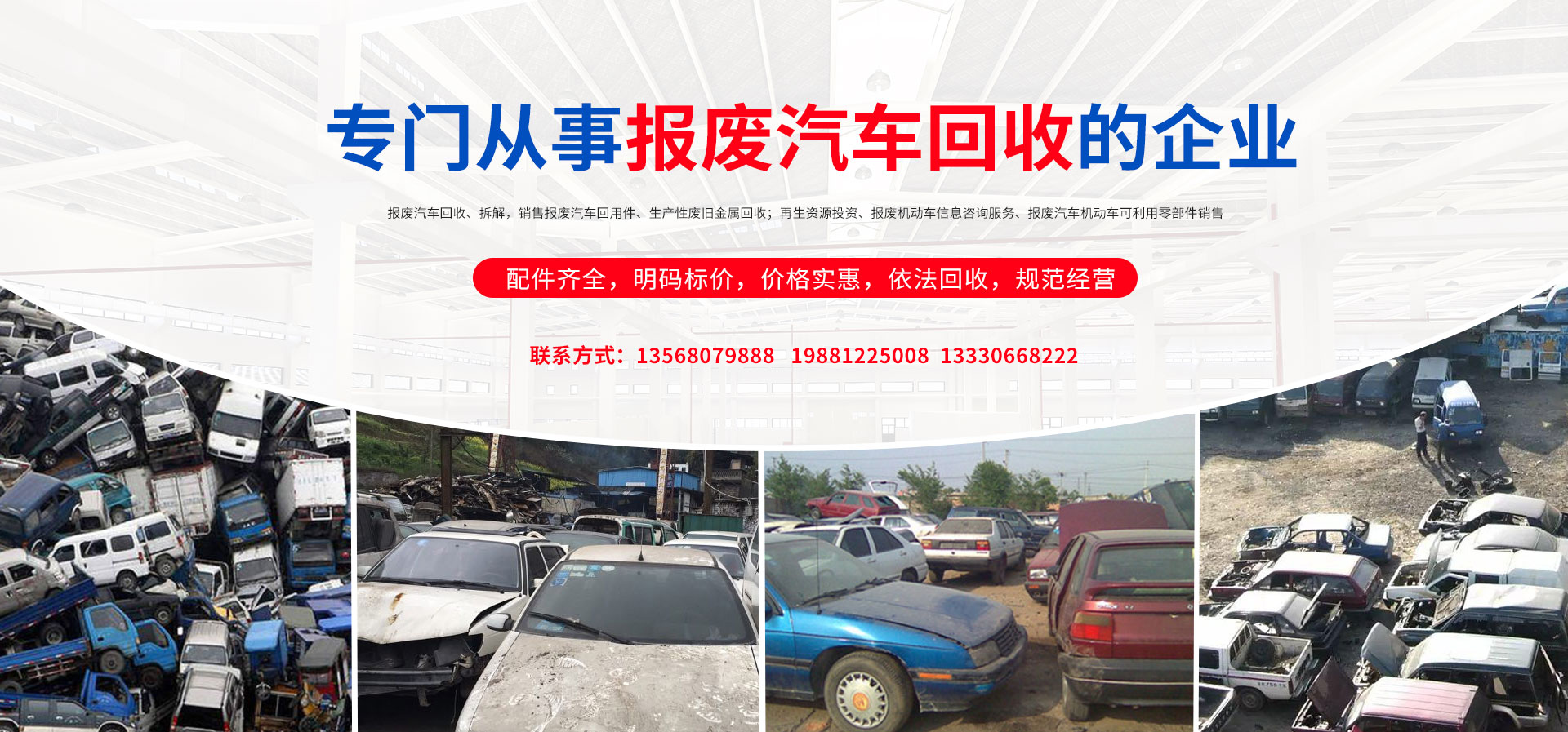 我公司在報(bào)廢汽車回收拆解中,認(rèn)真貫徹執(zhí)行國(guó)家法律法規(guī),嚴(yán)格執(zhí)行國(guó)務(wù)院令第307號(hào),積極開展行業(yè)自律,依法回收,規(guī)范經(jīng)營(yíng),從源頭上控制了報(bào)廢汽車整車、拼裝車、“五大總成”等上路和重新流入市場(chǎng)的現(xiàn)象,為緩解我市資源短缺,減輕環(huán)境污染,促進(jìn)資源循環(huán),維護(hù)人民群眾生命財(cái)產(chǎn)安全和道路交通安全起到了巨大的作用。